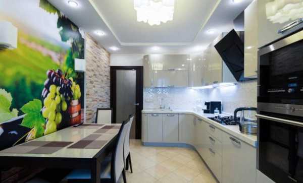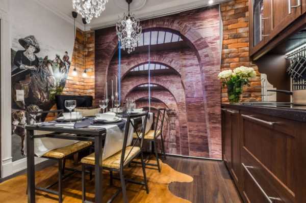 Рисунок обоев для кухни также стоит подбирать, учитывая возможности, например: