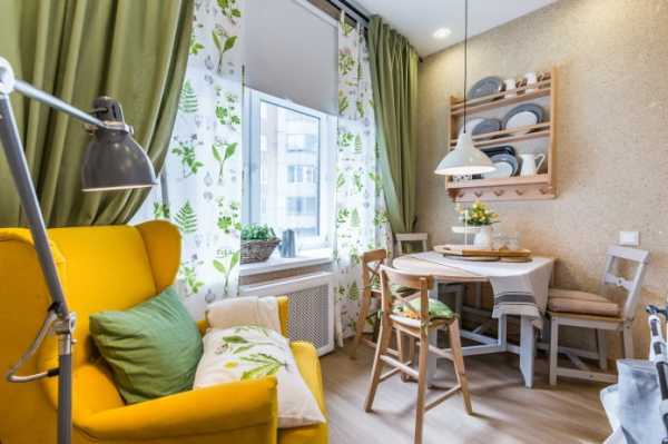 Фото 5. Даже маленькое помещение может быть сказочным. Нежный цвет обоев и цветочный принт в углу комнаты делят кухню на зоны.