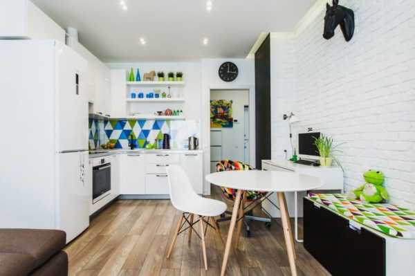 В квартирах-студиях, где кухня совмещается с гостиной, отделка стен поможет красиво зонировать пространство.