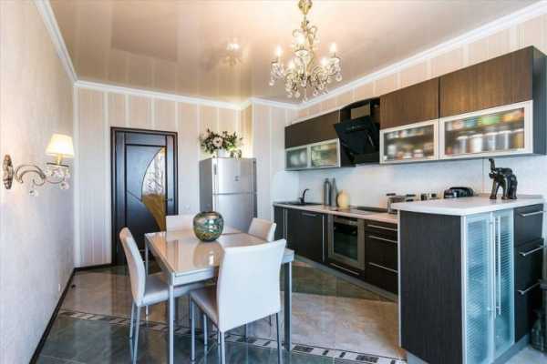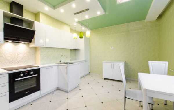 - Для потолка. В большинстве случаев потолок кухни делают идеально ровным и белоснежным. Допускается декорирование поверхности лепниной или рельефной потолочной плиткой с имитацией лепных узоров. На стыке потолка и стен часто устанавливают деревянный или гипсовый плинтус.