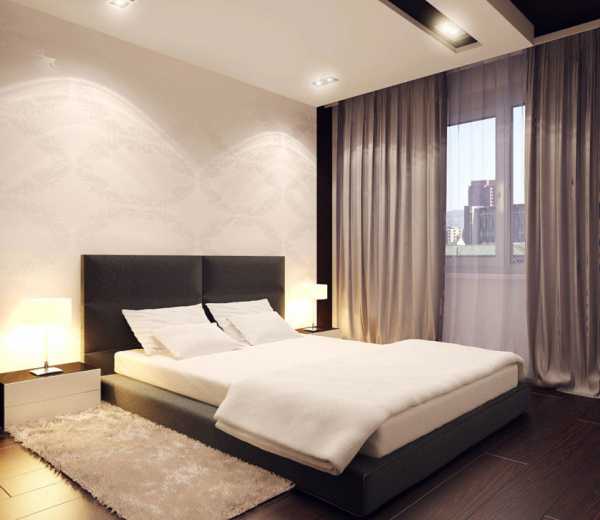 Также допустимы фотообои, неброские монохромные рисунки, чередование глянцевых и матовых текстур, эффект полированного камня, дерева, металлический блеск.