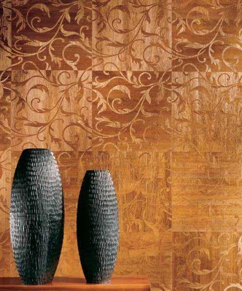 Дерево всегда выглядит богато и благородно, поэтому материалы несут на себе еще и визуальную нагрузку. В качестве декора на лицевой поверхности может быть резьба или инкрустация, в некоторых случаях обои окрашивают натуральными веществами.