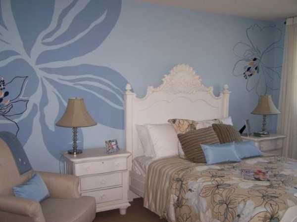 - Сине-голубые тона (см. Спальня в голубых тонах и детали оформления), способны не только зрительно расширить комнату, но и создать уютную атмосферу. Поскольку данный тон, является очень спокойно выполненным и томным.