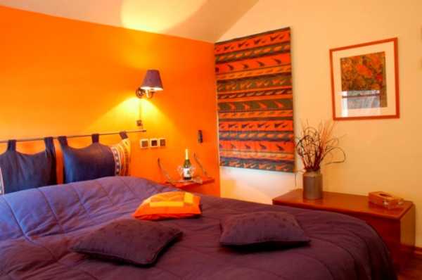 Но, столь насыщенные оттенки в спальне могут угнетать, поэтому основной фон можно сделать песочным, молочным или бежевым, использую огненные цвета в качестве акцентов.