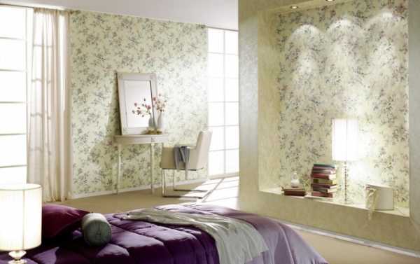 Не стоит также загромождать небольшое пространство комнаты лишними деталями. Поэтому для небольшой спальни больше подойдут обои с неброским мелким орнаментом. Особенно выигрышно здесь смотрятся абстрактные и растительные мотивы.