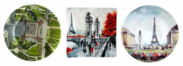 Интересными нам показались и тарелки с изображением символа Франции: с необычным ракурсом, квадратная и коллекционная.