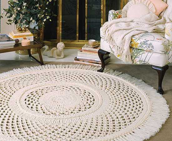 Интереснейшее решение для интерьера – кружевной ковер крупного плетения.