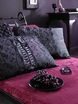 Кружева традиционно используют в интерьере спальни. Издавна девушки перед замужеством плели себе ажурный подзор для кровати. Кружевные подушки и покрывала придают помещению нежно-романтичный или изысканно роскошный облик.