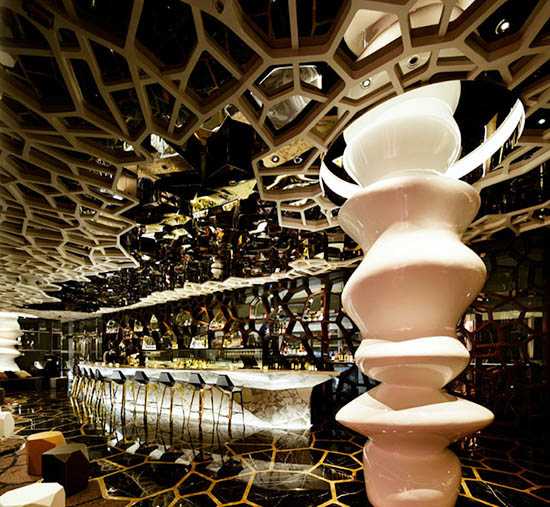 Сегодня в оформлении интерьеров, будь то жилые помещения или залы кафе и ресторанов, во всем мире широко используются самые нестандартные варианты. Как правило, дизайн должен создавать определенный настрой – на работу, отдых, общение и т.п. В связи с этим, весьма интересным и очень оригинальным будет использование мотива пчелиных сотов, который сделает обстановку более современной и создаст комфортную атмосферу. Соты, как одна из простейших и совершенных форм, сотворенных природой, как бы структурируют пространство, подчеркивая его однородность. Они вызывают ощущение порядка вещей в доме из-за своей внешней простоты и строгости, особенно если контуры сотов окрашены в ахроматические цвета. С другой стороны, очертания секций сотов позволяют визуально несколько видоизменять их, создавая таким образом бесконечное многообразие различных форм.
