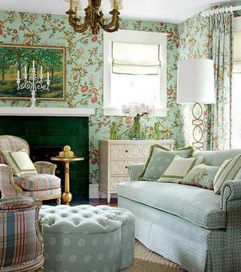 - В английском и французском интерьерах используются светлые оттенки с мелкими цветами.