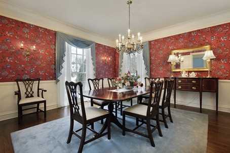 Обои в цветочек в классических интерьерах. Интерьерная классика вне зависимости от географической принадлежности тяготеет к цветочным принтам. В классических интерьерах обои в цветочек покрывают, как правило, не так много стенных поверхностей, как это принято в английском дизайне. Зачастую цветочные обои включаются в классический интерьер в виде вставок или в комбинации с другой отделкой – например, со стенными панелями по низу стены.