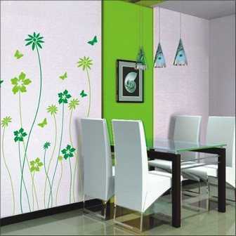 Ещё одну возможность быстрого преображения декора с помощью цветочной тематики дарят интерьерные наклейки. Всего каких-то несколько цветочков, разбросанных по однотонной поверхности стены, невероятно оживят помещение, подарят ему игривость и небольшую легкомысленность.