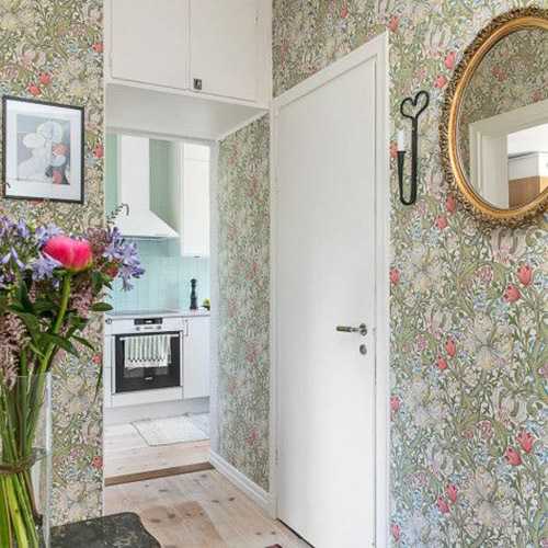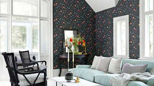 Будьте очень осторожны с мелкими цветочками на стенах! Они могут выглядеть потрясающе в помещении, где вы провели пару часов. От пестроты при продолжительном нахождении в комнате может начать рябить в глазах. Поэтому мы рекомендуем использовать мелкие детали дозировано, комбинируя их со спокойными принтами или однотонными крашеными стенами.
