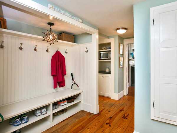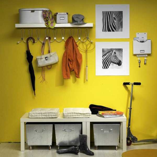 Также вместо шкафа могут быть использованы полки или крючки. Крючки занимают наименьшее пространство и, как правило, используются только тогда, когда меблировка прихожей совсем не возможна.