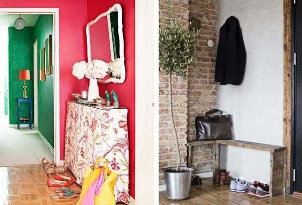 В оформлении прихожей будут уместны и яркие краски, и естественные цвета