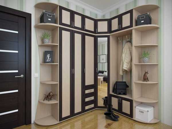 При наличии свободного угла в прихожей возможно создание угловой конструкции, которая возьмет на себя все функциональные заботы. Конечно, в хрущевках создание таких конструкций влечет за собой некоторые сложности, однако есть и явные преимущества в пользу такого решения.