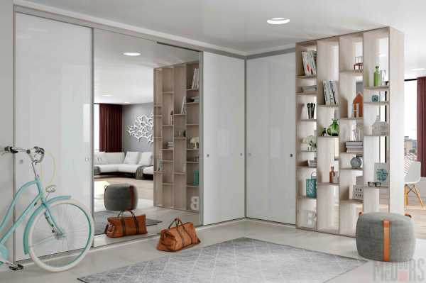 - оснастите все имеющиеся дверные проемы, ведущие из прихожей в спальни, раздвижными системами — они не «съедают» полезную площадь и так маленького помещения, в отличие от стандартной двери;