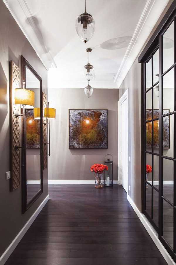 Особо длинный коридор зрительно укоротить поможет большая картина, подвешенная на стене напротив входной двери.