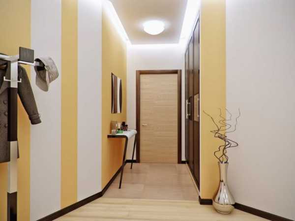 - при отделке стен лучше выбирать светлые тона или обои с широкими горизонтальными линиями. Это поможет визуально раздвинуть стены и создать в прихожей ощущение простора. В качестве образца используйте фото интерьера узкого коридора в квартире;
