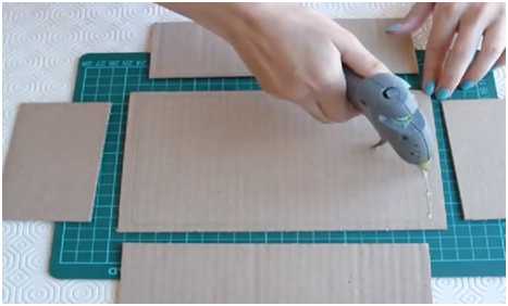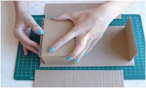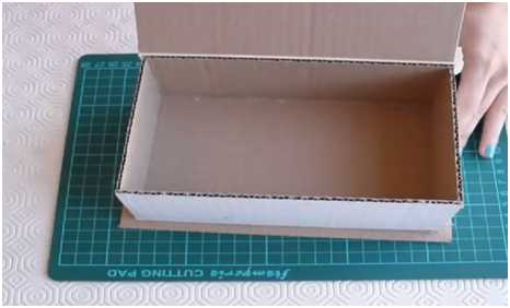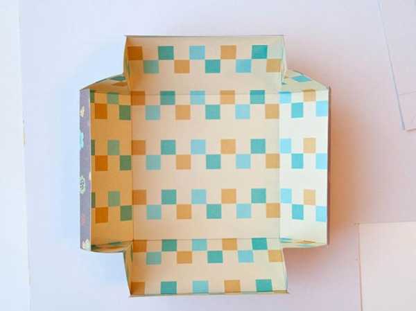 Если подходящей выкройки под рукой не оказалось, ее можно изготовить самим. Для этого на листе картона нужно нарисовать прямоугольник или квадрат нужного размера. Затем от каждой стороны проводятся прямые линии соответствующей длины, что соответствует глубине коробки. На одной из сторон каждой боковины коробки начертите небольшие выступы шириной 1-2 см. Их нужно будет отрезать возле дна коробки под углом 45 градусов. Затем заготовка вырезается и сгибается по каждой линии. Выступы смазываются клеем и приклеиваются к соседней боковине коробки. Можно прикрепить выступы и с помощью скотча.