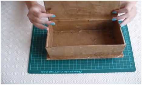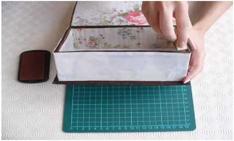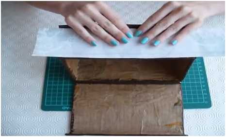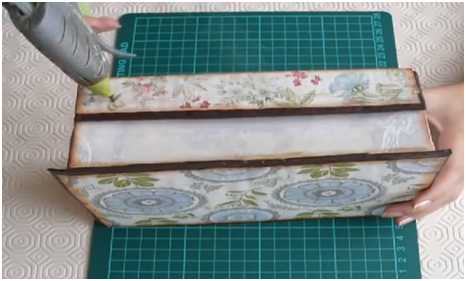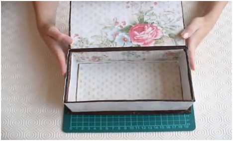 Таким образом, обклеиваем всю коробку как внутри, так и снаружи, не оставляя ни единого сантиметра.
