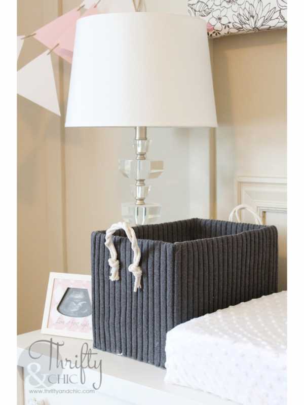 Наконец, последний проект, не самый стильный, зато очень уютный. Автор блога Thrifty and chic Алиша — мать двоих детей, любительница порядка и противница того, чтобы выкидывать коробки. Не удивительно, что она решила превратить коробки от подгузников в симпатичные емкости для хранения.