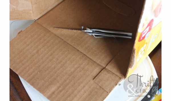 Шаг 1. Отрежьте верх коробки. Это проще сделать резаком или острым ножом, а не ножницами.