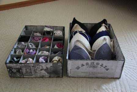 Использование готовой упаковочной коробки (чаще всего из-под обуви) будет идеальным вариантом для хранения нужных мелочей. Можно также воспользоваться картонными ящиками для бумаги, бытовой техники, посуды или других подходящего размера.