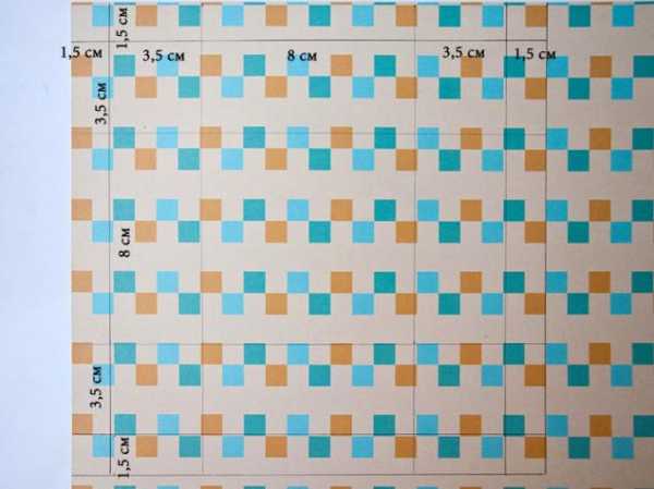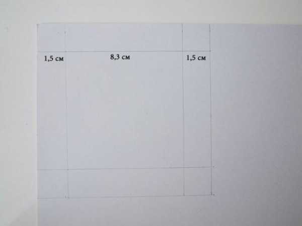 Итак, нам нужно отложить в обе стороны на бумаге кусочек для загиба края, высоту коробочки, днище.