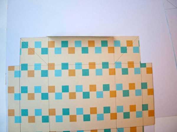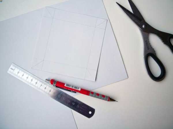 Вырезаем, проводим диагонали. Кстати говоря, диагонали я уже давно не провожу, а сразу их продавливаю, так что этот этап вполне можно исключать, но вот сами линии коробочки я все же советую рисовать. Если они вам мешают, то потом их лучше просто стереть.