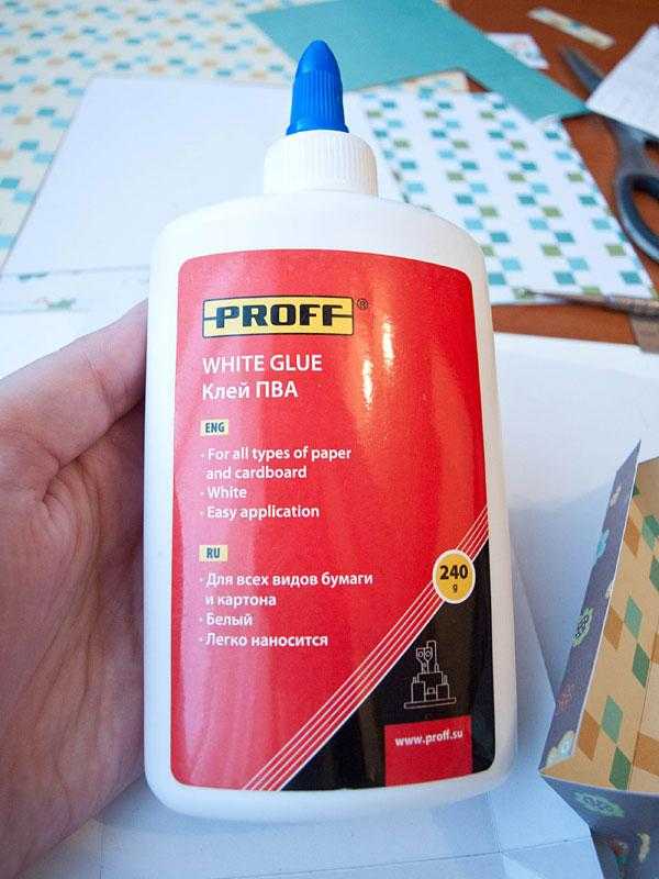 И мы вплотную приблизились к финальному этапу. Правда быстро? Ей богу, больше времени пишу, чем делала коробочку! Берем клей ПВА. Лучше всего брать тот, на котором указано, что он пригоден для картона. Но, в принципе, подойдет любой. Просто обычные детско-школьные клеи нужно держать дольше. А это лишняя трата времени. Лично я начинаю засыпать в процессе и поэтому купила себе вот такой вот клей. Очень хороший. Мне нравится. Схватывается быстро и держит крепко.