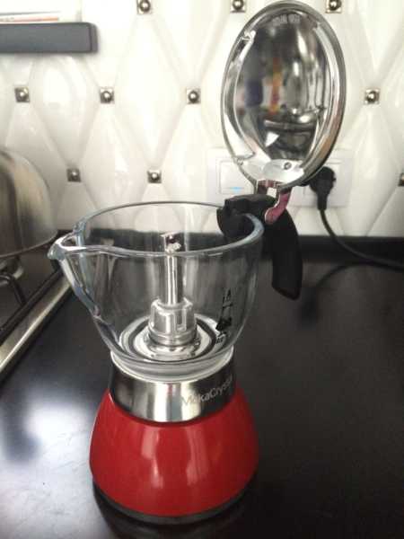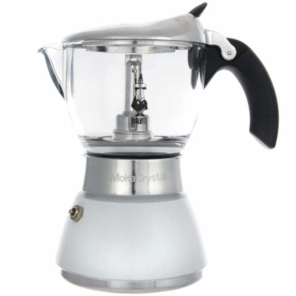 Moka Crystall выпущена по образу модели Moka Express, только с одним отличием – стеклянная верхняя чаша. Эта модель подходит для всех видов плит, кроме индукционной. Нижняя чаша корпуса изготовлена из алюминия.