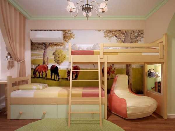 В семье два ребенка, но их пол и возраст может быть различным. Рассмотрим несколько вариантов обустройства детской зоны.