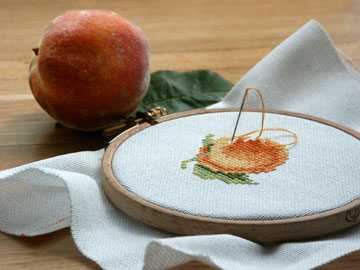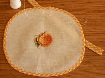 Выберите тот рисунок, который вы будете вышивать (например, если украшаете банку с персиковым вареньем, то пусть на «чепчике» красуется спелый персик).
