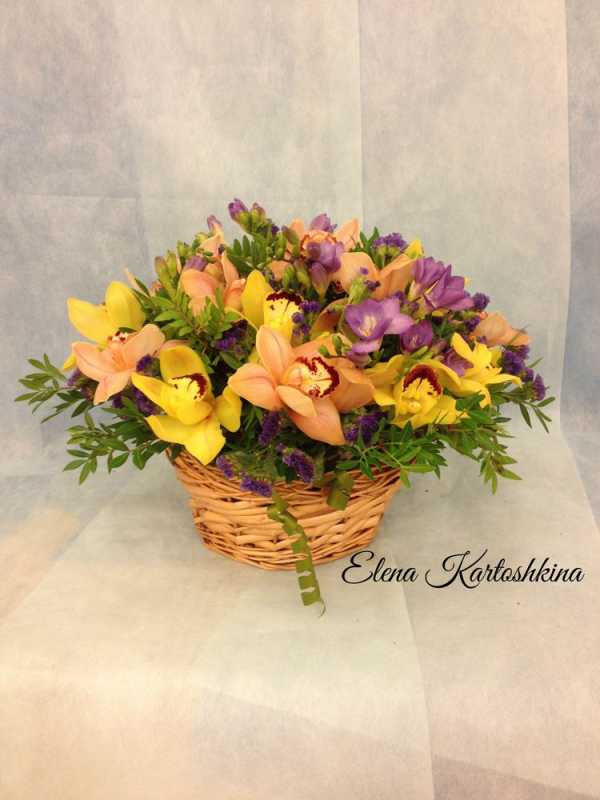 Красивый букет ярких цветов в корзине