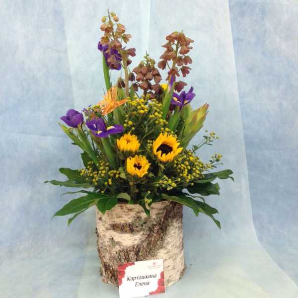 Флористика поглотила меня целиком, и дома из шелковых цветов и на работе из живых цветов, и даже гуляя в лесу ищу из чего составить красивую композицию. Даже красивая коряга может стать прекрасным дополнением букета или веточка изящно изогнутая для вертикального букета так любимого мною.