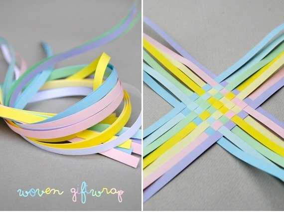 Очень эффектный вариант оформления подарка переплетёнными полосами бумаги или атласных лент