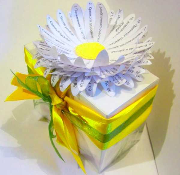 Здесь уже все целиком и полностью зависит от размера подарка и нашей фантазии. Можно подобрать уже готовую коробку подходящего размера и декорировать ее.