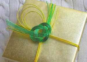 - Чтобы красиво перевязать подарок, подойдут и обычные шелковые или атласные ленты, а еще из них получаются красивые банты для украшения. Отлично смотрятся также декоративные шнуры разных цветов с кистями на концах.