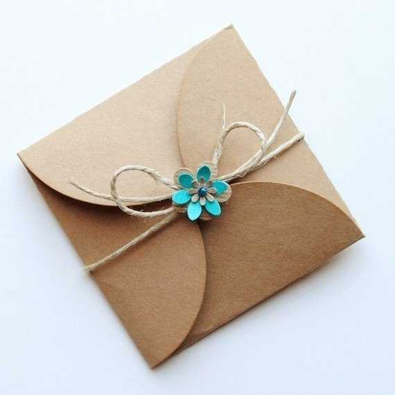 Для упаковки плоского или небольшого мягкого подарка можно выбрать пакет-конверт и оформить его в виде бандероли. Грубая бечевка и печать из сургуча придаст презенту солидный вид и необычность.