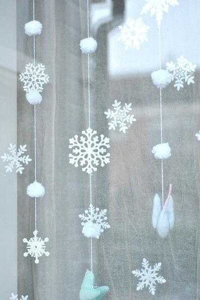 Большой простор для воплощения фантазий – создание самодельных гирлянд для окон.