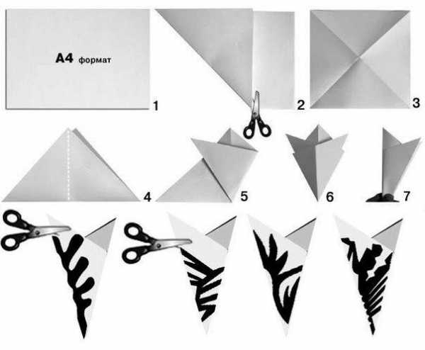 Также можно проявить свою фантазию, и самостоятельно придумать разные дизайны снежинок. Главное правильно сложить лист бумаги, и помнить, что линии разреза не должны пересекаться.
