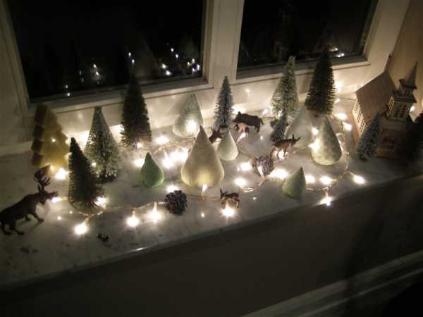 Маленькие елочки из всевозможных материалов идеальны для новогоднего декора окон.