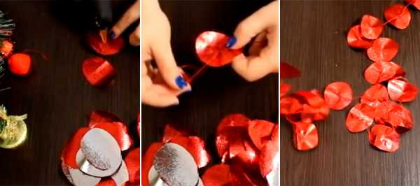 Новогодняя гирлянда своими руками для украшения может получиться из обычной мишуры. Также можно сделать бумажную гирлянду своими руками.