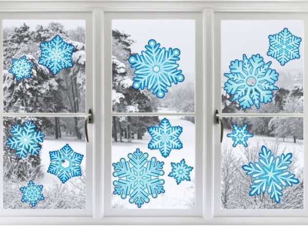 Украсить окна к Новому году можно не только создавая что-то собственноручно. Для тех, кто не любит после праздника смывать со стекол рисунки или следы от приклеенных украшений, подходящей идеей окажется использование покупных наклеек. На создание этих декоративных элементов не требуется время, достаточно выбрать и приобрести понравившийся вариант. Большинство наклеек одноразовые, однако, их можно сохранить и использовать на следующий год. Для этого после окончания праздников нужно аккуратно снять наклейку и приклеить ее обратно к листу, в котором она продавалась.