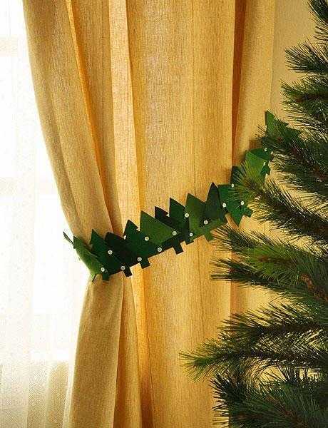 Помимо стекол, можно еще украсить карниз, шторы и подоконники. На шторы можно прикрепить бумажные снежинки. На карниз можно повесить гирлянды, бумажные или электрические. Также можно повесить мишуру. Но больше всего пространства для творчества конечно на подоконнике.