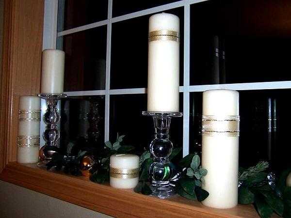 Можно сделать шикарные композиции из свечей на подоконнике.