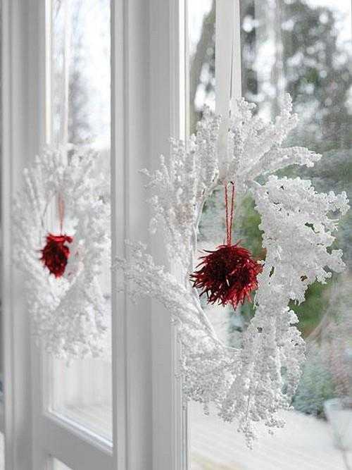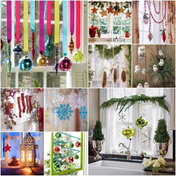 Хороши для декора окон и всевозможные комбинации с елочными игрушками.
