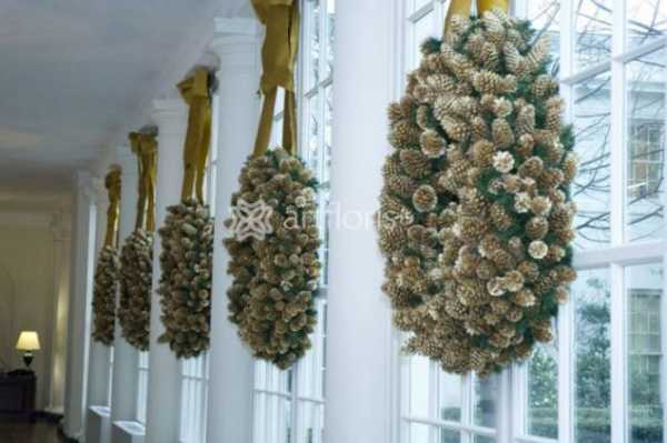 Один из популярных способов украшения окна – рождественский венок, который пришел к нам из-за рубежа. Венок можно купить готовый, но можно и создать оригинальный вариант своими руками. Он может быть выполнен как из настоящих веток ели, так и из дождика или искусственных веток.