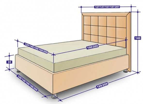 Высота определяется тремя характеристиками: длиной ножек, основанием ложи, матраса и основанием спального места. Эти параметры отличаются в разных странах.